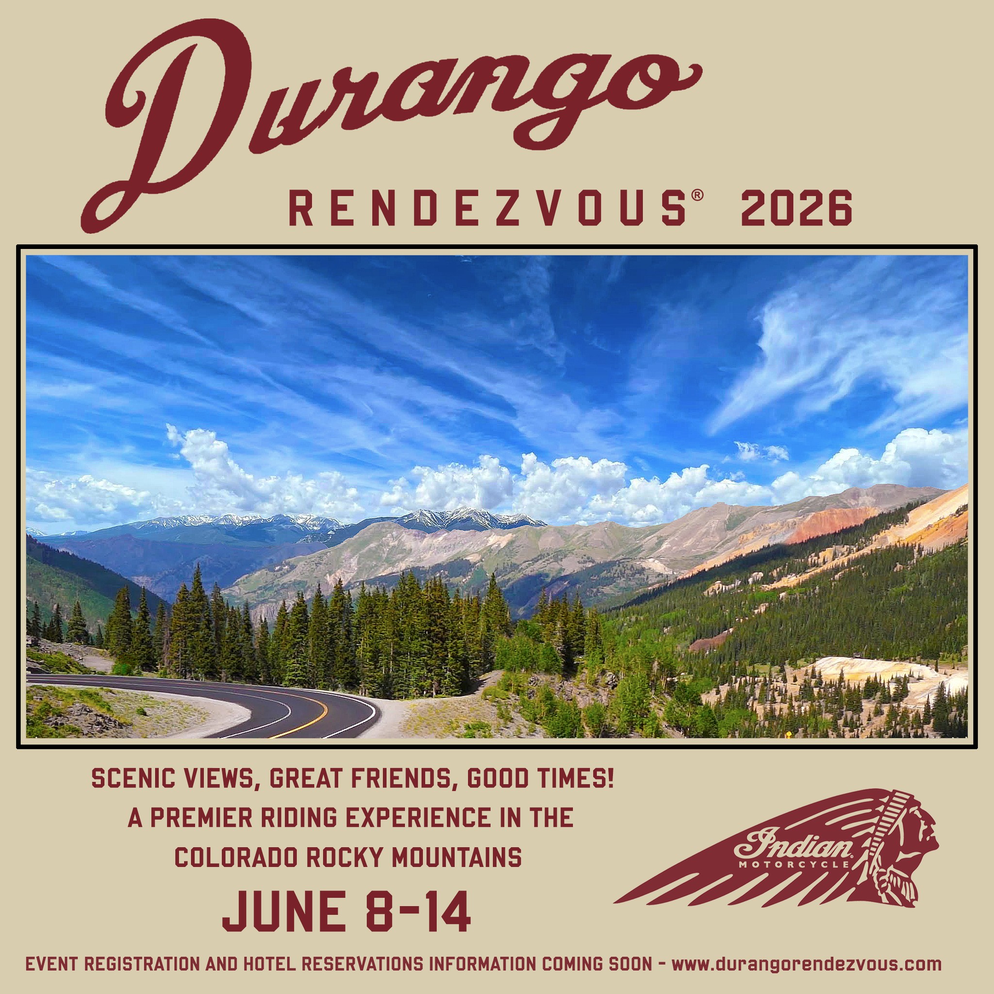Durango Rendezvous returns to the stunning Rocky Mountains of Southwest Colorado from June 8–14, 2026, marking a landmark year of celebration. Join riders from across the USA and beyond for a full week of unforgettable riding, community, and adventure as we celebrate multiple historic anniversaries—including Indian Motorcycle’s 125th anniversary—in one of the most iconic riding destinations in the country.